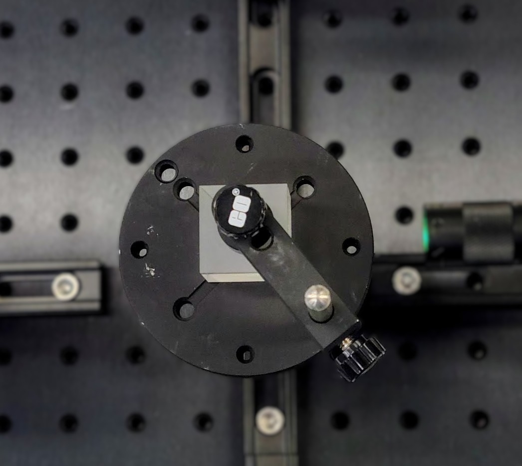 The placement of the beamsplitter cube is shown in Figure 10, where we have 50% of the light reflecting off the hypotenuse and onto the first mirror at 90 degrees. Move the top of the beamsplitter mount to the middle of the beamsplitter and carefully tighten down the cube (Figure 11).