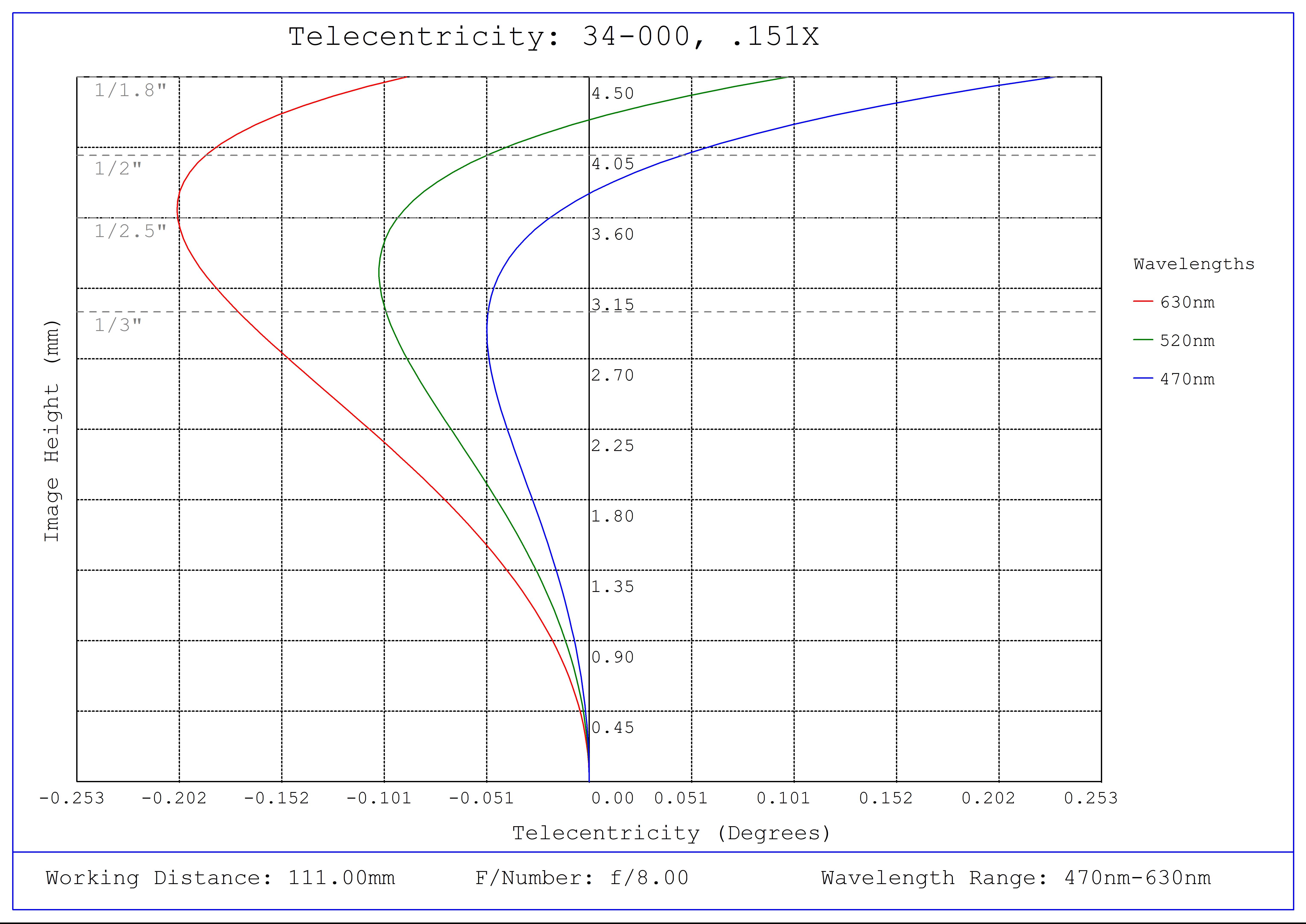 #34-000, 0.151X, 1/1.8" C-Mount TitanTL® Telecentric Lens, Telecentricity Plot