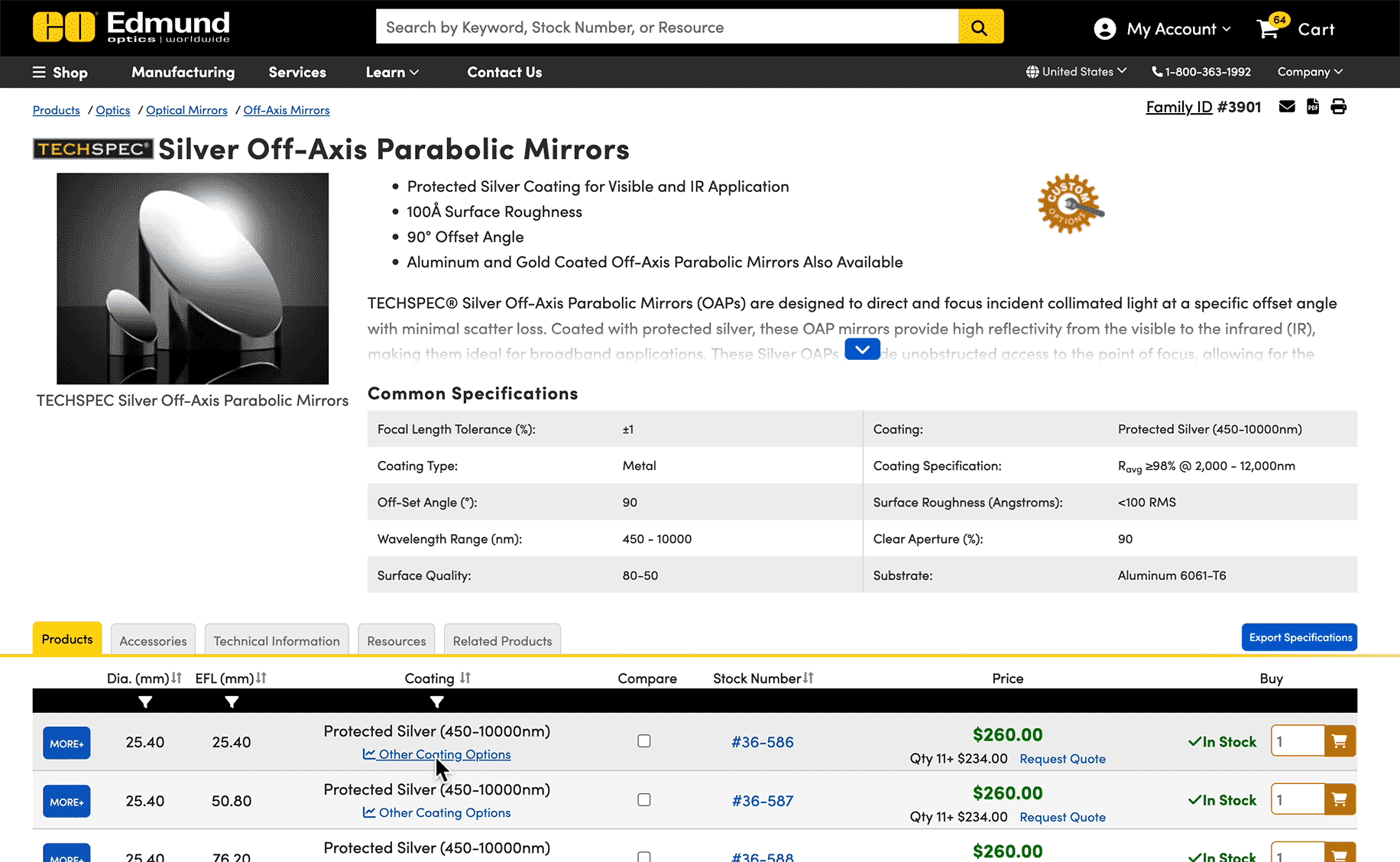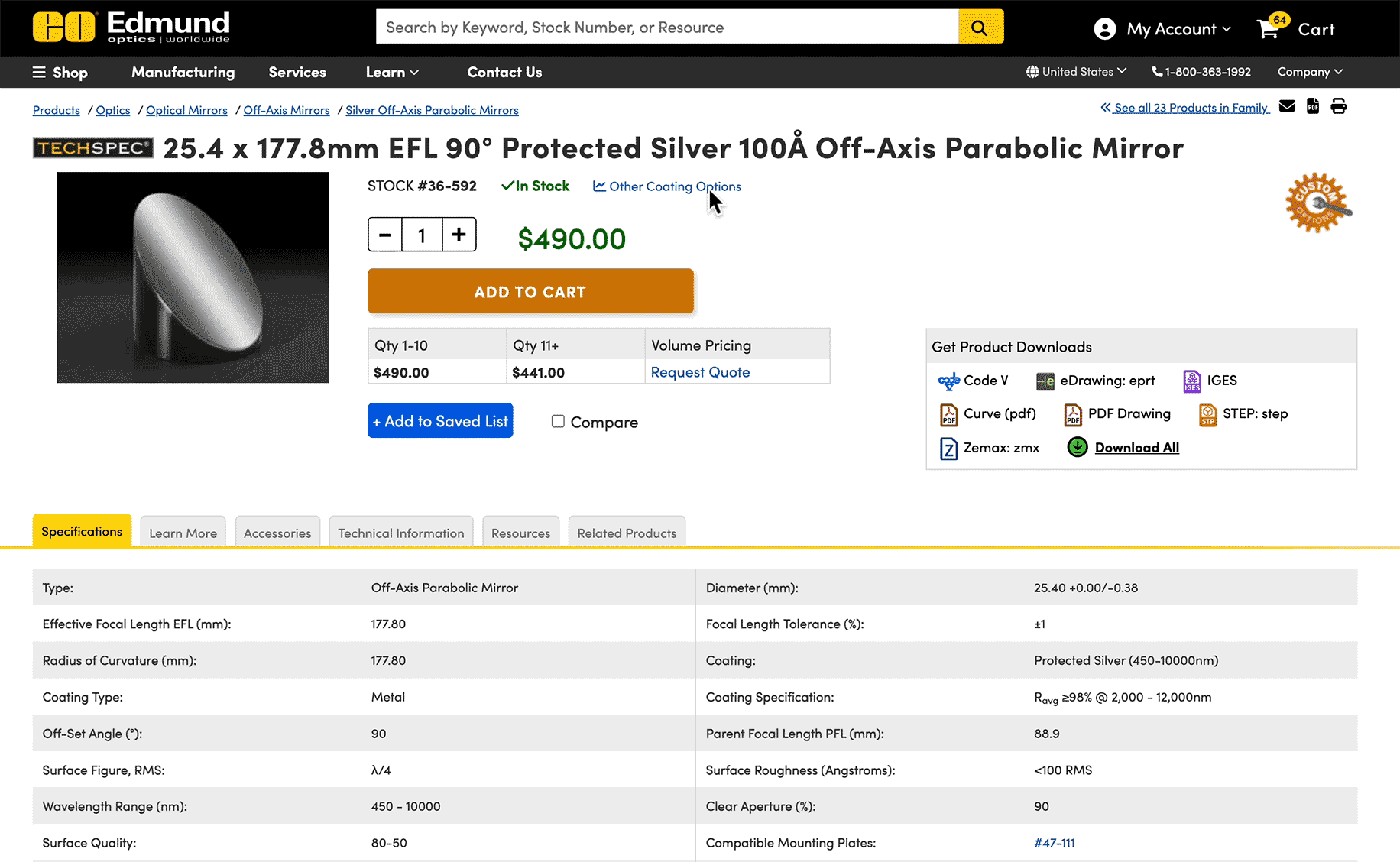 See all available coatings for an optic. Quickly see which products are in stock and add them to the compare tool to see all of their specifications.